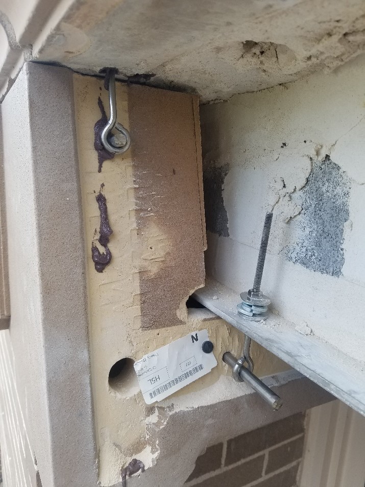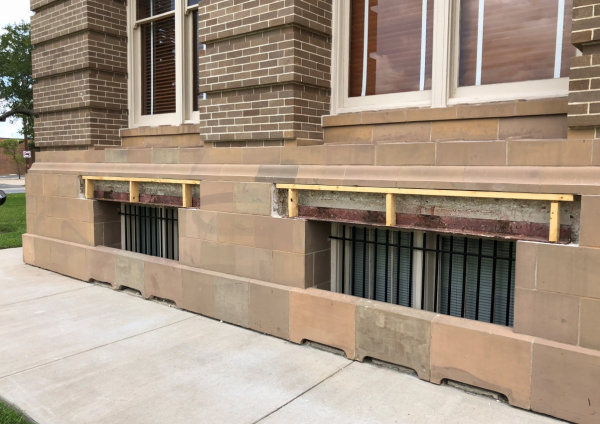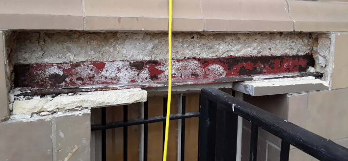 steel lintel replacement, terra cotta spall and crack repairs, tuckpointing and
