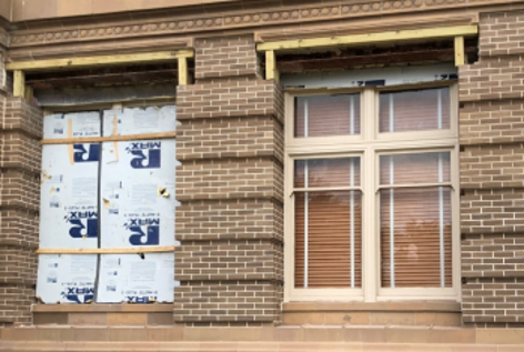 initial conditions assessment in of the wood windows, terra cotta cladding, and