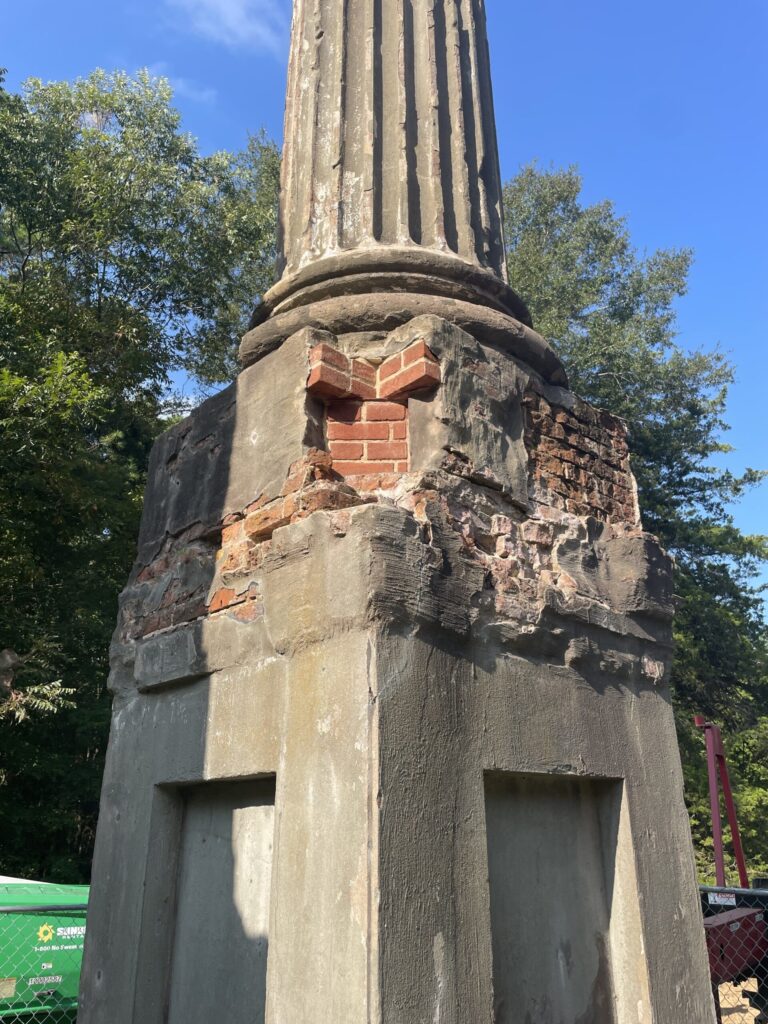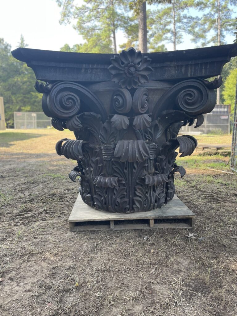 Windsor Plantation was constructed for planter Smith Coffee Daniell II from 1859 to 1861. One of the largest private residences in Mississippi before the Civil War, the mansion originally featured twenty-nine Corinthian columns. More than a century of destructive exposure to the elements has caused significant erosion to the 45-foot-tall Corinthian columns and fracturing of cast iron capitals on the columns. The stabilization project includes the repointing of masonry, infilling voids in the columns with new masonry, pinning and securing the failing stucco finish, and conservation treatments to the cast iron capitals.